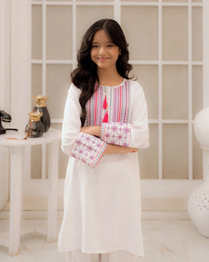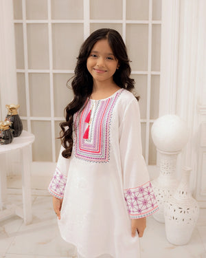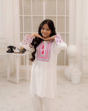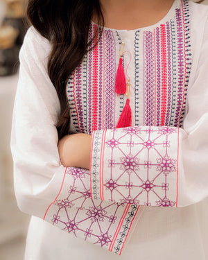 Color:  Off-White with Maroon and Pink Embroidery