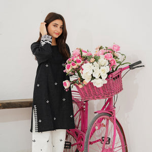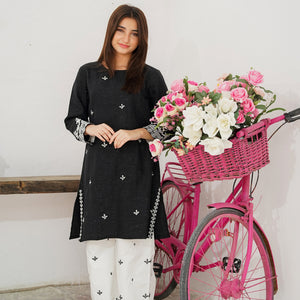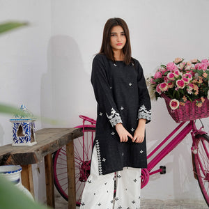 Turn heads in this beautifully embroidered 2-pc Khaddar suit, crafted in a soft black hue that radiates femininity. The intricate Eastern design adds grace and timeless charm — perfect for festive days or elegant evenings.