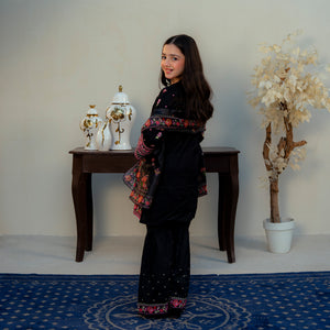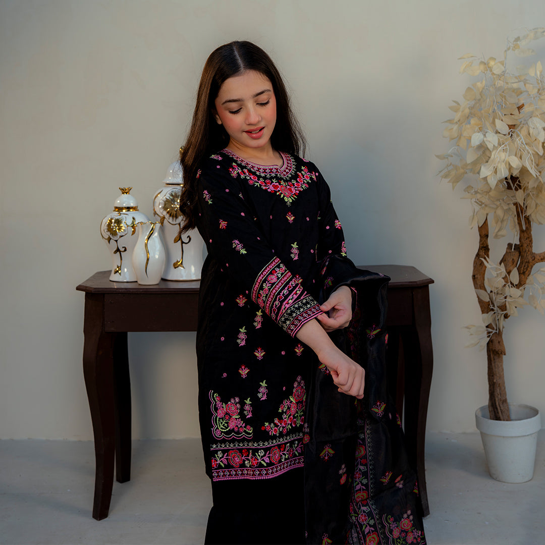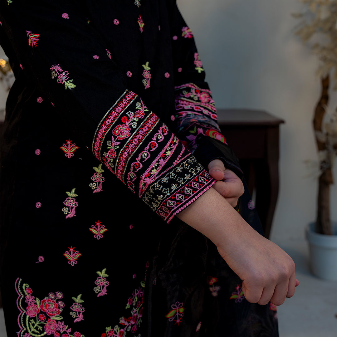Embroidered Cotton Suit –Siyah