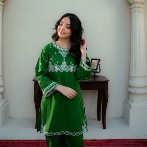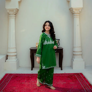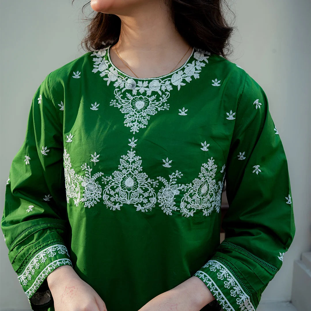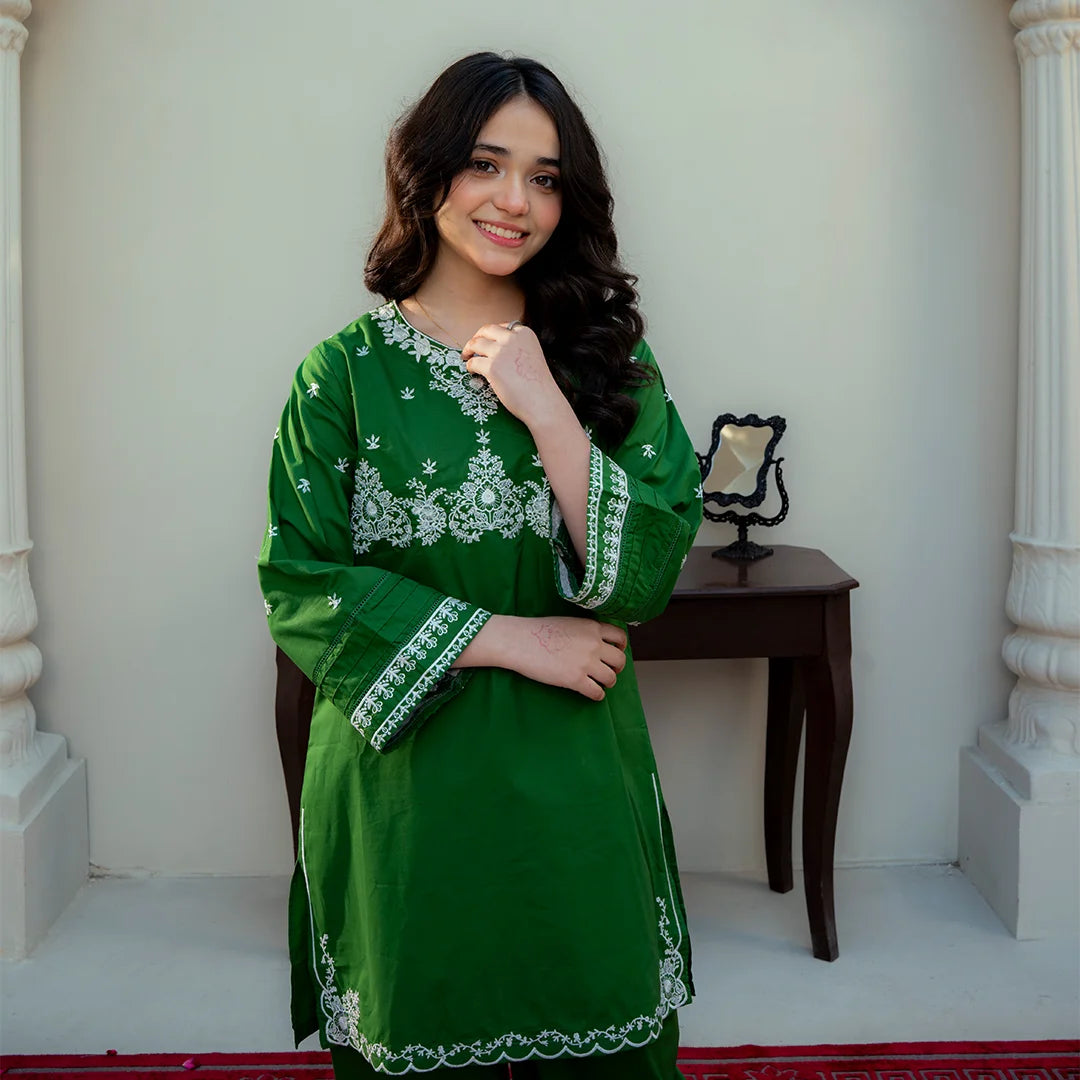 • Color: Deep Olive Green (Zaitoon) with White Embroidery