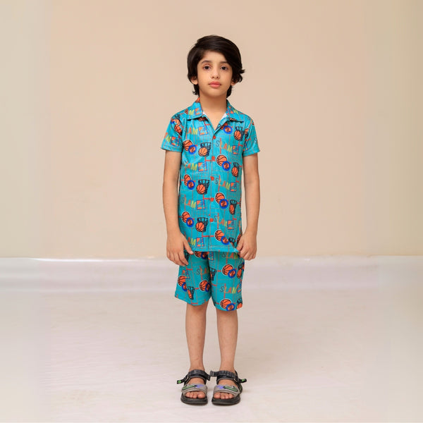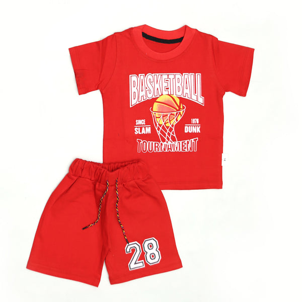 Product Details:Keep your little one stylish and comfortable this summer with this lightweight cotton summer suit. Featuring a fun basketball print on a half-sleeve T-shirt paired with soft cotton...