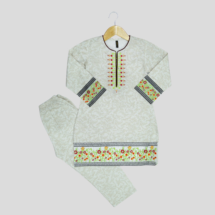 Cream Cord Set Printed Patch Embroidered