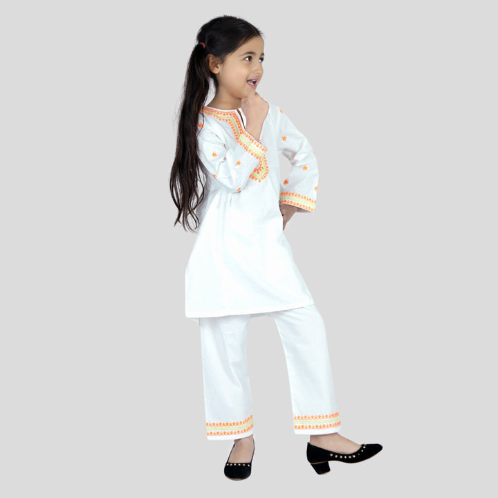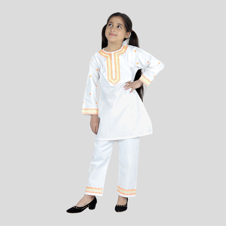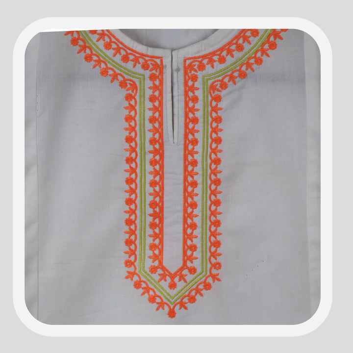 White Cord Set orange embroidered 100% Cotton