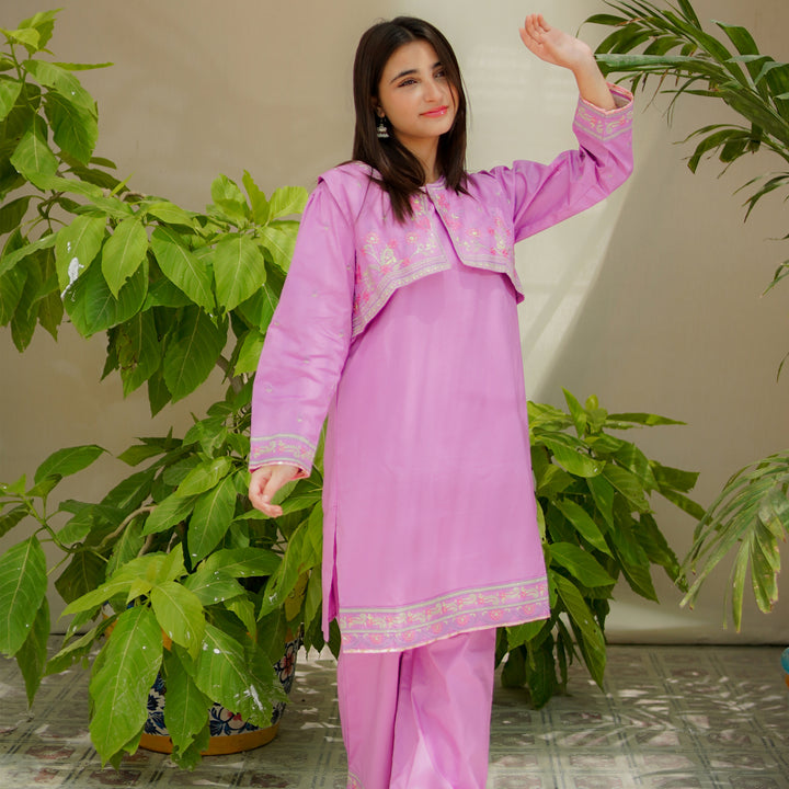 Step into timeless elegance with this 2-piece Eastern ensemble, featuring intricate embroidery that adds a touch of refined artistry. Perfect for festive gatherings or formal occasions, this outfit is a beautiful blend of tradition and sophistication.