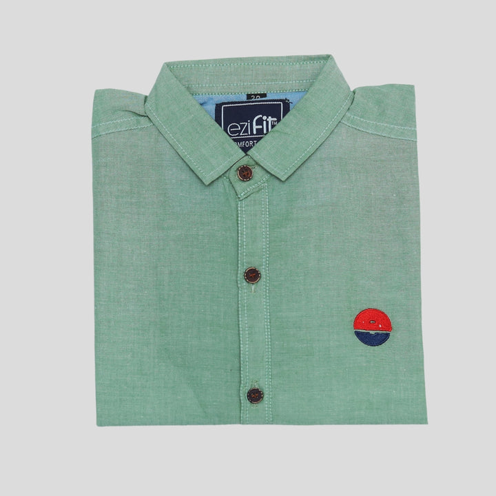 Green Cotton Summer Shirt – Plain, Soft, Breathable Comfort