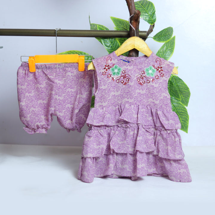 Lilac Printed embroidery frock Cord Set