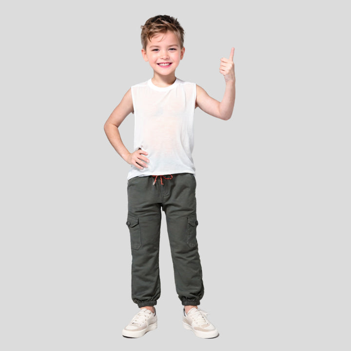 - Soft & Breathable Cotton: Made from high-quality cotton, these cargo trousers are soft on your child’s skin, ensuring comfort throughout the day. The breathable fabric keeps them cool and comfy during active play.