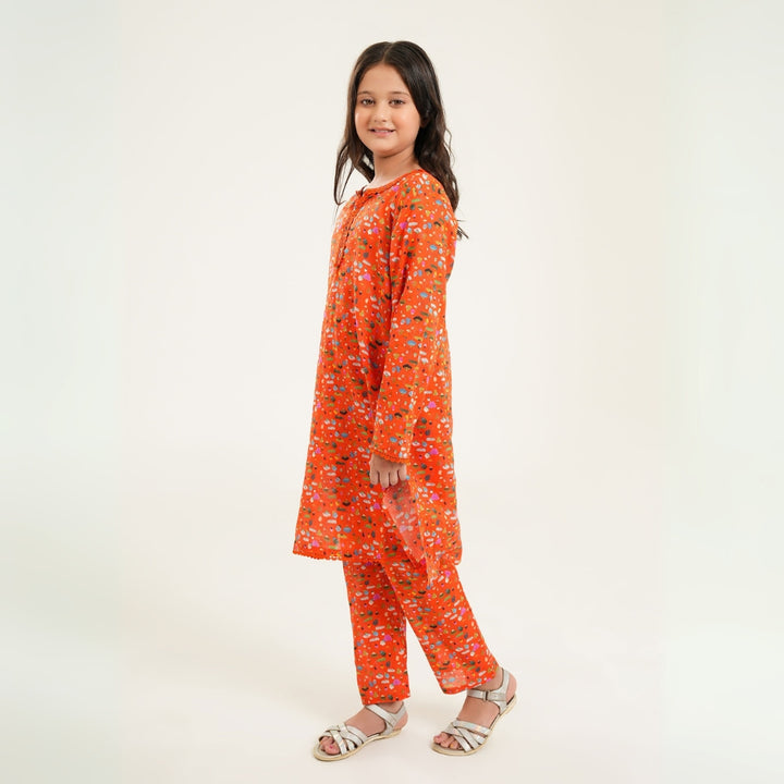 Stylish 2-piece lawn suit featuring a stitched shirt and trouser in vibrant multicolored digital prints—perfect for casual wear and summer fun.