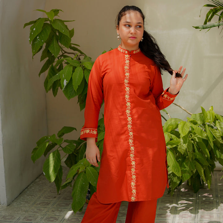 This 2-piece Cotton set is designed for the modern woman who values tradition. With delicate embroidery work and an elegant Eastern cut, it's the perfect outfit for both day and evening wear. Dress it up with statement jewelry or keep it simple — either way, you're turning heads.