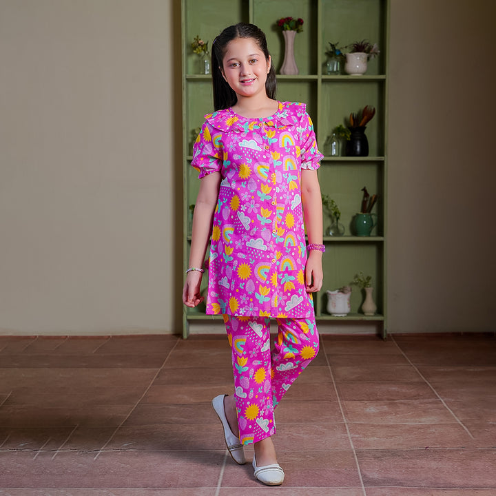 Stay cool and stylish with this digitally printed 2-piece lawn coord set, perfect for summer days. Crafted from breathable fabric with playful prints — ideal for casual outings and everyday wear.