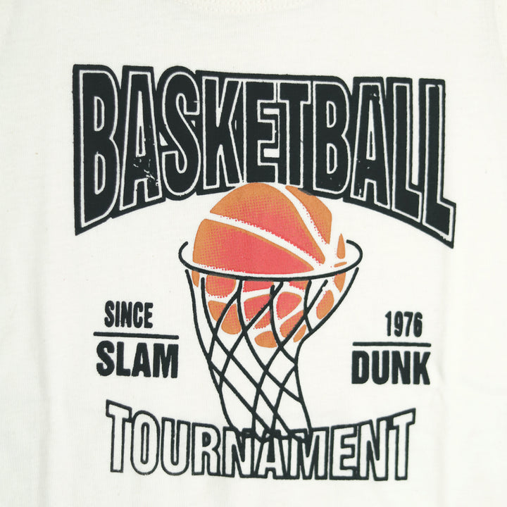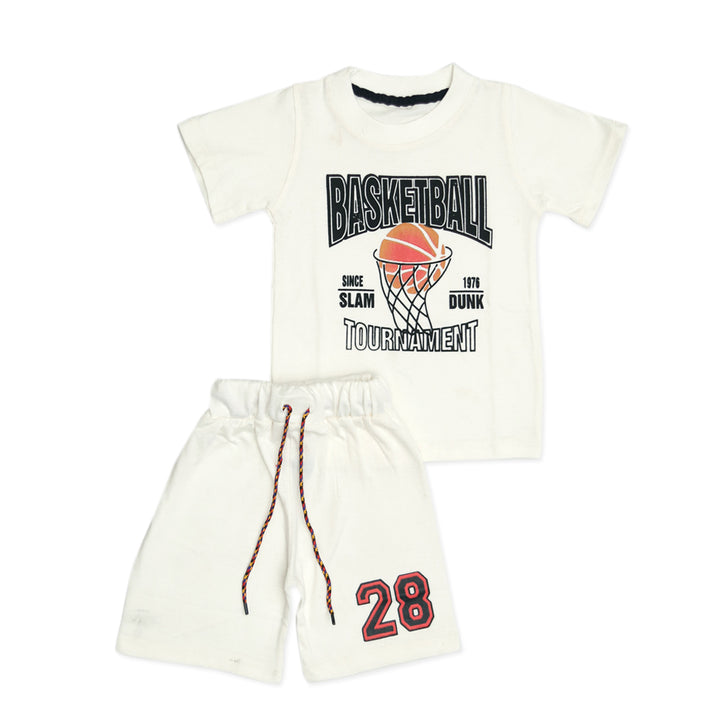 Set Includes: Half-sleeve basketball print T-shirt and matching knickers