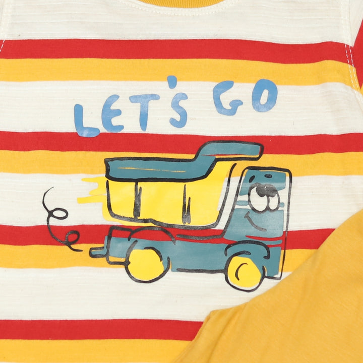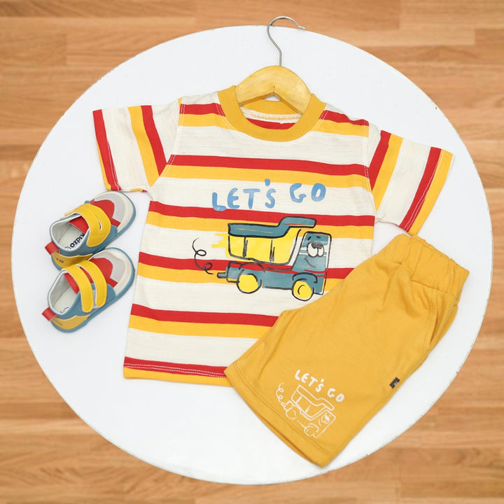 Sweetie Pie Striped Classic Cotton Combo Boys Top & Bottom Set | White&Yellow
