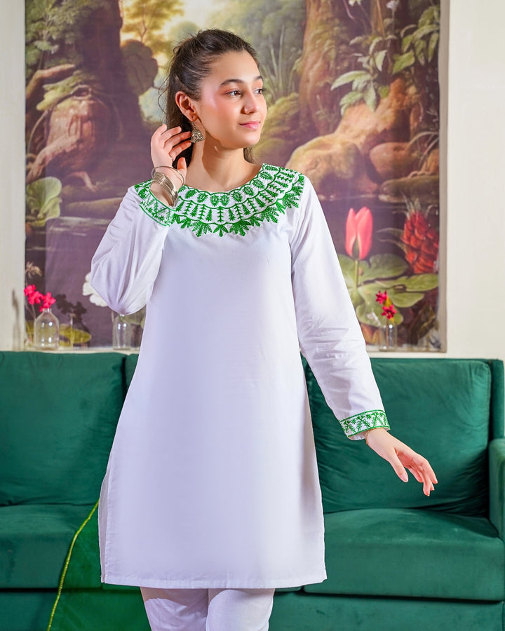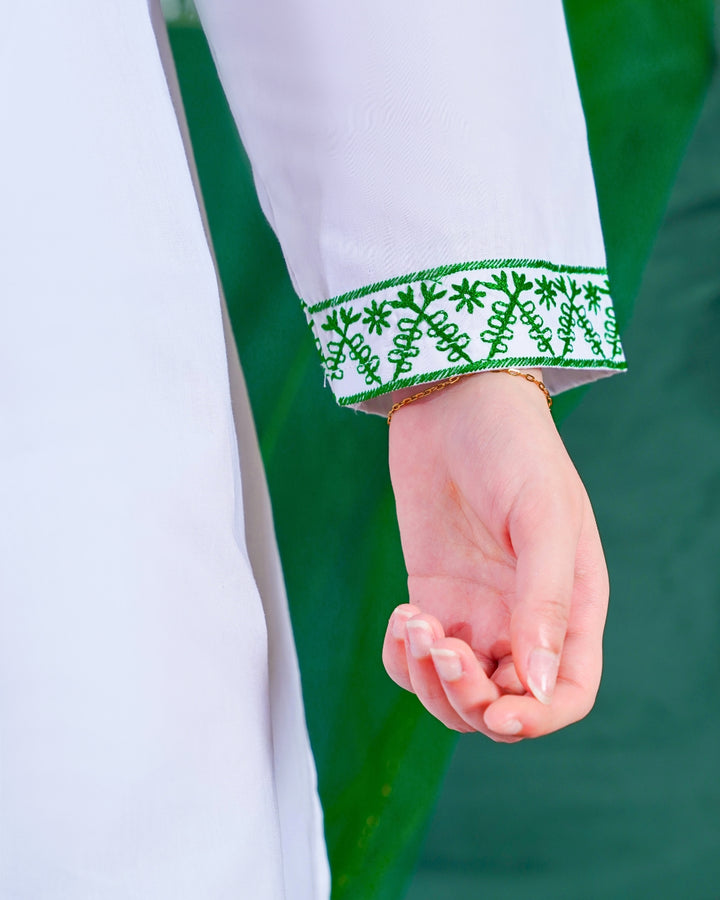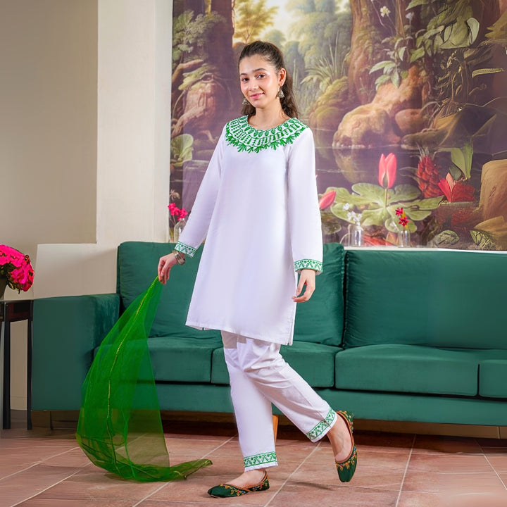 Celebrate freedom with this ready-to-wear 3-piece ensemble, crafted in lightweight premium cotton with refined embroidered detailing. Featuring a classic shirt, matching trouser, and a complementing dupatta – it’s a festive essential that blends elegance with ease.
