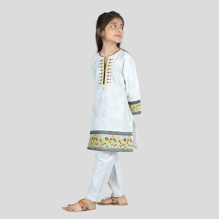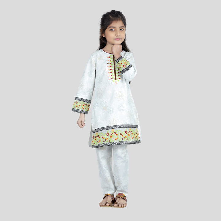 White Cord Set Printed Patch Embroidered 100% Cotton